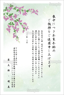 秋の七草のひとつ、萩の花をあしらった喪中はがきデザイン。古くから和歌にも詠まれ、日本の美意識を象徴する秋草・萩は、静かで控えめなたたずまいが特徴です。明るく賑やかな夏から秋へと移ろう時季に咲くその姿は、季節の変わり目の寂しさやもののあはれを感じさせ、落ち着いた印象を与えます。