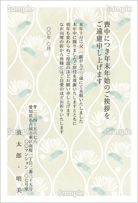 和の伝統文様、立涌(たてわく)と白菊の花を組み合わせてデザインした喪中はがきテンプレートです。落ち着いて品格のある絵柄です。